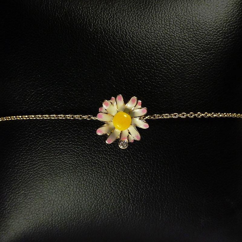 Représentant une marguerite entièrement laquée à la main accompagnée d'un diamant de 0,03ct environ.